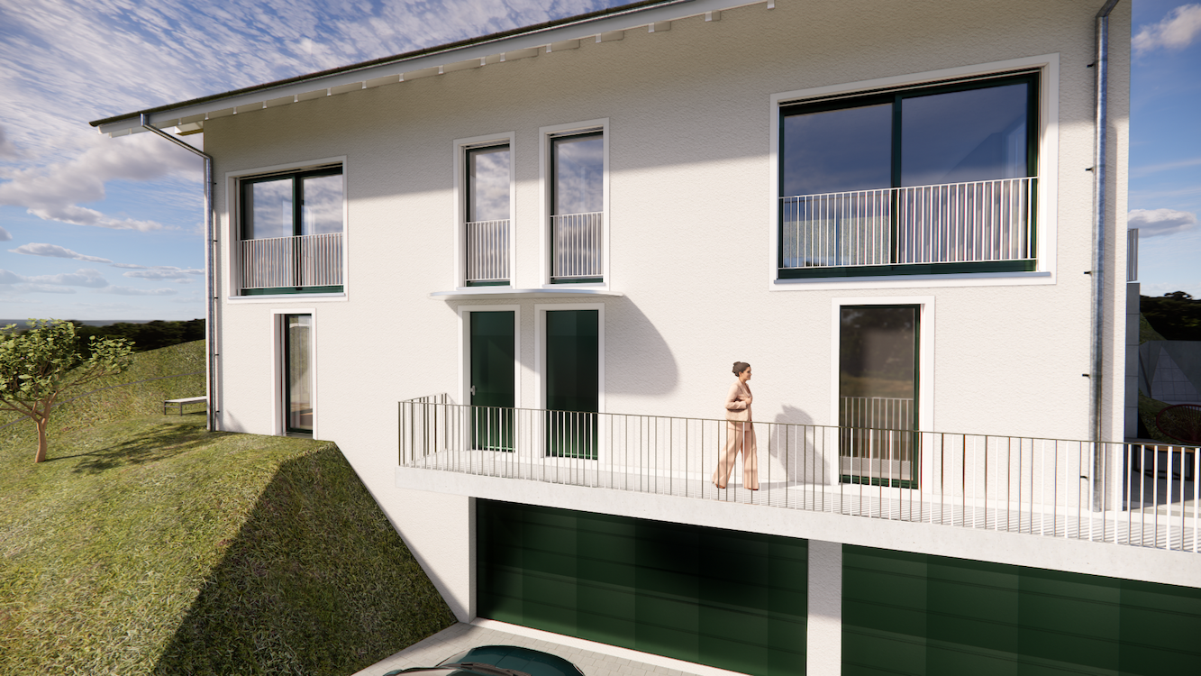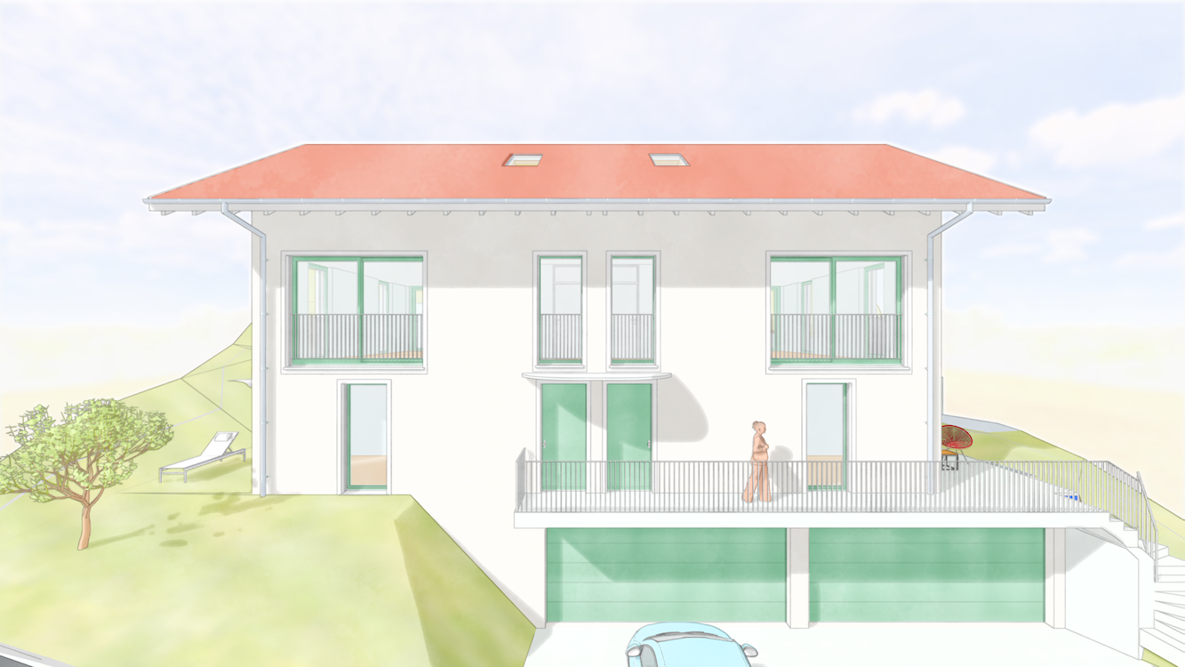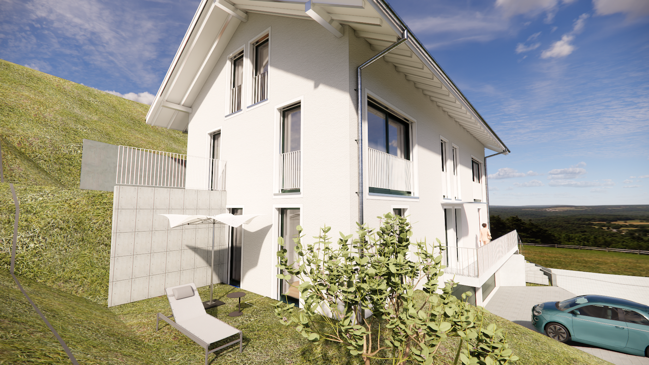 In Holziken entsteht an ruhiger Lage ein neues Doppeleinfamilienhaus, das sich von Osten nach Westen erstreckt und sich harmonisch in die Umgebung einfügt.